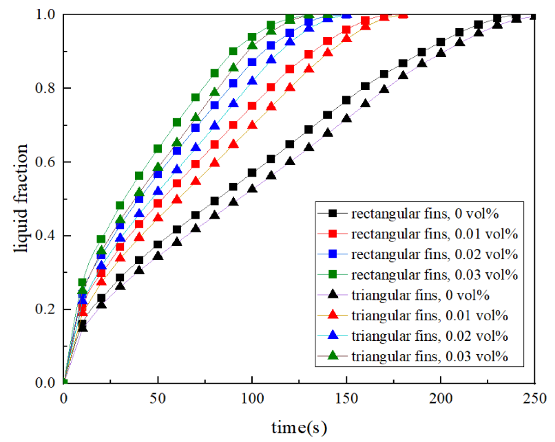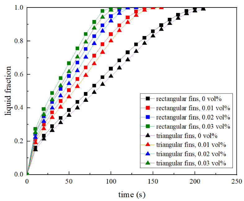 研究团队提出了石墨烯纳米片(GNP)增强的带鳍PCM强化PCM融化方法,通过地面常重力实验和数值仿真系统研究了鳍片形状、GNP浓度和重力水平等对PCM动态熔化特性的影响,发现矩形和三角形鳍片均可强化PCM内的热传输,GNP的存在可进一步显著促进融化,大幅减少微/低重力下的熔化时间;探讨了复合相变体系的热-流-磁耦合效应及调控机制,提出了构建空间多形态能源综合利用系统的设想,强调了相变动力学中热-流-磁耦合效应的重要性,以期推动磁场调控技术在空间储能基础研究中实现新突破。