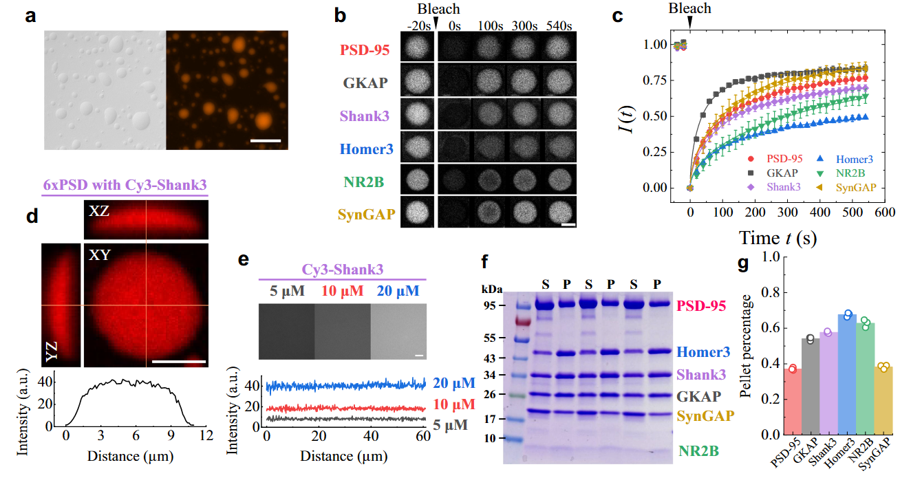 图2:荧光定量和离心实验揭示6xPSD蛋白扩散和浓度分布规律