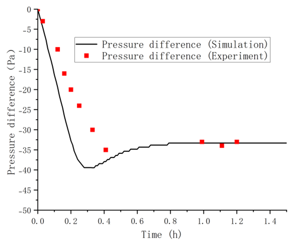 图3 光学高分子液体固化过程中的压强差。实验得到压强差上升较慢,最终恒定值近似。