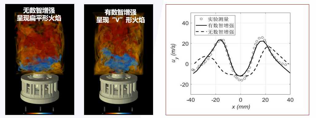 图3. 数智增强的大涡模拟应用于燃烧腔内强旋流反应流仿真