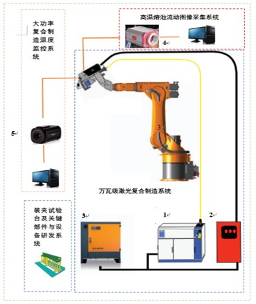 该系统是自主研发的激光先进制造柔性实验平台,可用于激光与材料相互作用领域的基础研究、工艺研发与行业应用研究。该系统由五轴框架式机器人、关节臂式机器人、高精度运动平台、高功率激光器系统、无氧舱等设备组成。