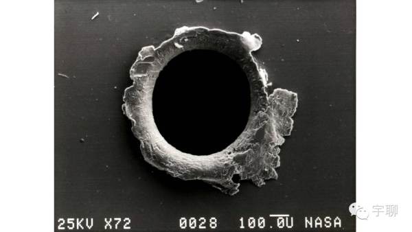40年过去了,该效应已成为现实,2009 年,俄罗斯废弃的 Comos 卫星和美国的 Iridum 卫星相撞,产生了 2000 多个太空碎片,国际空间站、和平号空间站、哈勃望远镜均受到了太空垃圾的“亲密接触”(下图是被太空垃圾撞击的航天器表面),这些碎片如不主动清理,将会继续大幅度的增加。