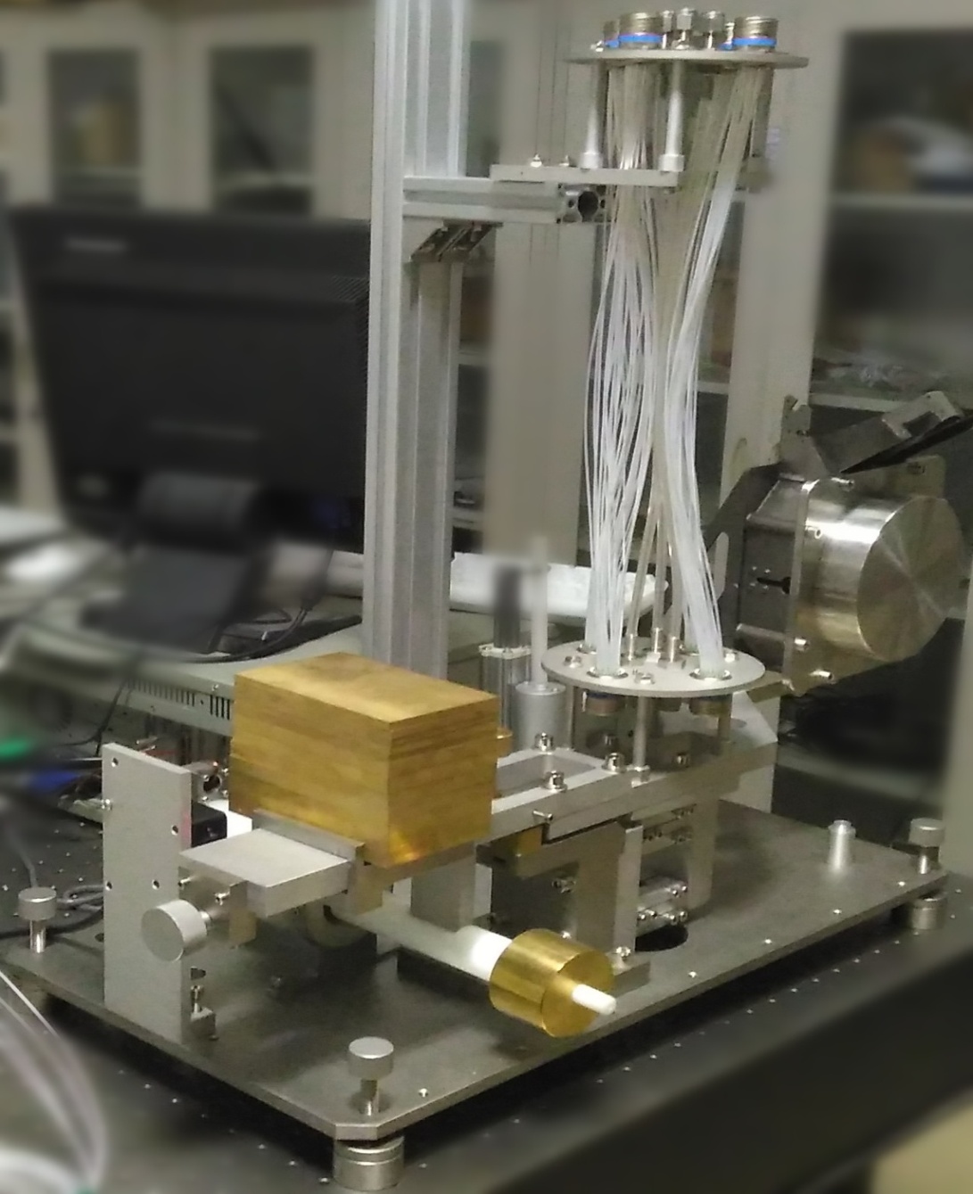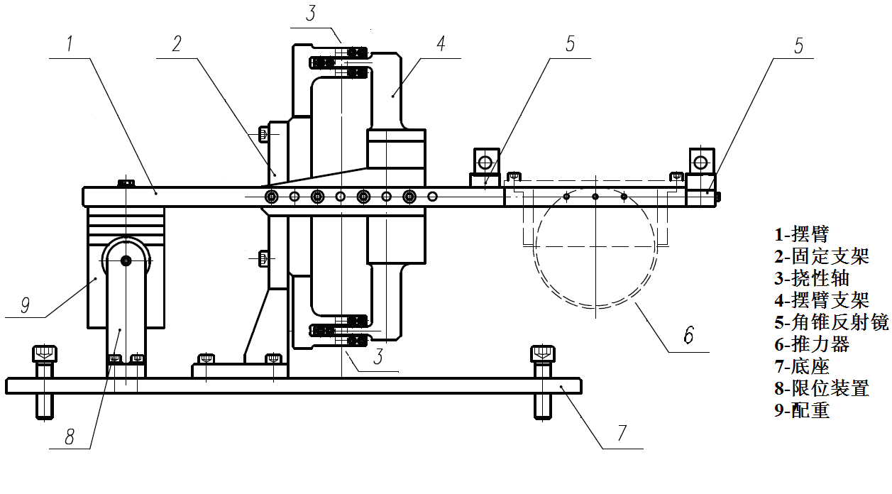 实际上推力台架为我们国家卫星的地面发动机做了很大的贡献,这个台架在航天部门地面实验里面是应用过的,它本质上是一个高精度的天平的扭摆系统,它的基本原理就是通过把力转化为位移进行测量,它的测力范围大约是在1-1000mN,可以做mN量级的微力测试。