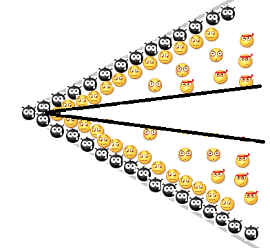 想象你把一块石头扔到水里,就会出现一圈圈的涟漪,也就是石头扰动水面形成了波;同样的,物体在空气中运动的时候也会扰动空气形成波,当波的频率在人耳可以听见的范围就是我们听到的声音。很显然波在空气中的传播速度是有限的,也就是声音的传播速度---音速。如果飞机飞得很快,达到了音速,它激起的那些波就被飞机本身赶上了,并且堆积起来。换句话说,就是空气分子来不及逃开,被挤压在了一起,形成一张看不见的薄薄的膜,就像这样: