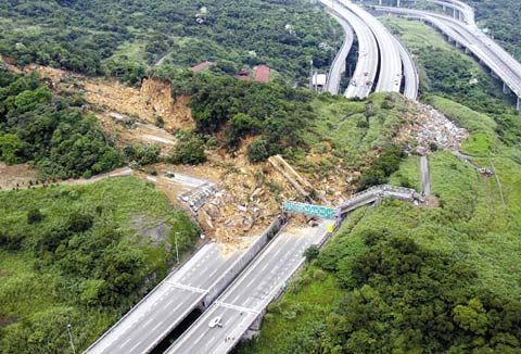 图2 山体滑坡冲毁道路,堵断交通