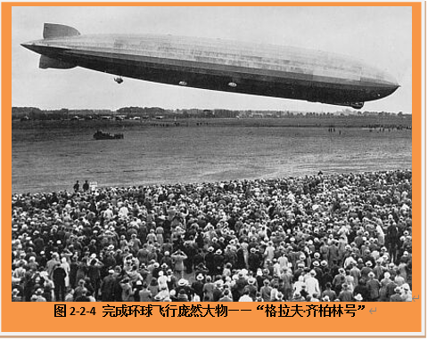 1900年,被后人称为“飞艇之父”的德国人齐柏林制造了世界上第一架硬式飞艇Lz-1号。它有一个硬的铝材骨架作为艇体构架,外面蒙上防水布制成的蒙皮,艇体内有17个气囊,总容积达到1.2万立方米,比当时软式飞艇大5~6倍。由于多气囊能起到类似船上隔水舱的作用,所以大大提高了飞行的安全度。从这年开始,齐柏林先后设计、制造、试飞了6艘大型硬式飞艇,遭遇过飞艇当场毁坏的种种失败,但终于研制成功续航时间超过24小时的大飞艇。