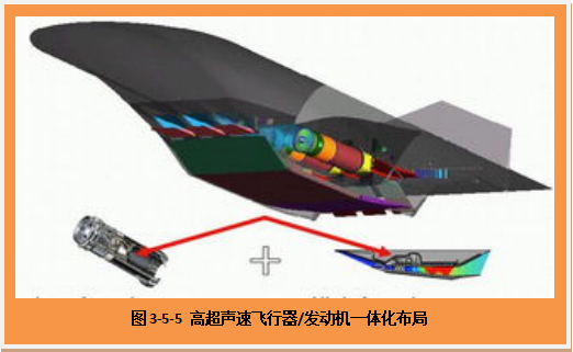 还一点有意思的事情要告诉小朋友们,超燃冲压发动机不像其他航空发动机那样安装在飞机里面,而是安装高超声速飞行器的“肚皮”下面。而且,由于超燃冲压发动机在飞机静止时不能工作,所以往往要用“组合”式发动机,即带上两种发动机,一个是低速用的涡轮发动机,一个是高速用的超燃冲压发动机。这里不但需要研究两种发动机如何转级的问题,而且需要考虑飞行器和发动机一体化设计的问题。