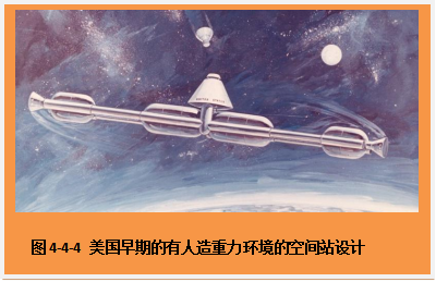 最后,我们还知道在轨道上飞行着的空间站,是一种微重力环境。航天员在空间站“失重”状态下,会遇到一些“空间运动病”引起的麻烦(如头晕、目眩、恶心、呕吐、出冷汗和空间定向障碍等);会对人体的心血管、前庭、视觉、运动协调等机能产生影响,造成人体机能水平的降低和空间工作能力的退化。如果是长期在空间站工作,还在会发生骨质流失和肌肉萎缩的现象,可能产生严重的心理障碍(如厌烦、焦虑、不安、抑郁、愤怒、失眠等)。所以,航天员上天之前,一般都要进行严格的训练。那么小朋友们想一想,能不能避免这些问题发生呢?于是,一种人造重力环境的设想就出现了。