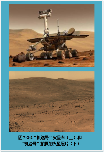 人们为了寻找更多的证据,后来各国又发射了多种火星探测器。其中美国发射的“勇气号”、“机遇号”及“好奇号”收获颇丰,已得到了一些令人兴奋的结果。这些探测器都带有一辆大型的可以在火星表面移动的火星车,火星车上安装有高清晰度的光学照相机及一些检测和分析仪器。