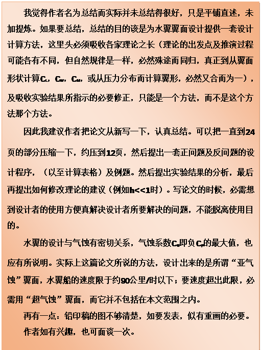 五、从钱所长对于《二元水翼理论总结》一文的评审意见想到的