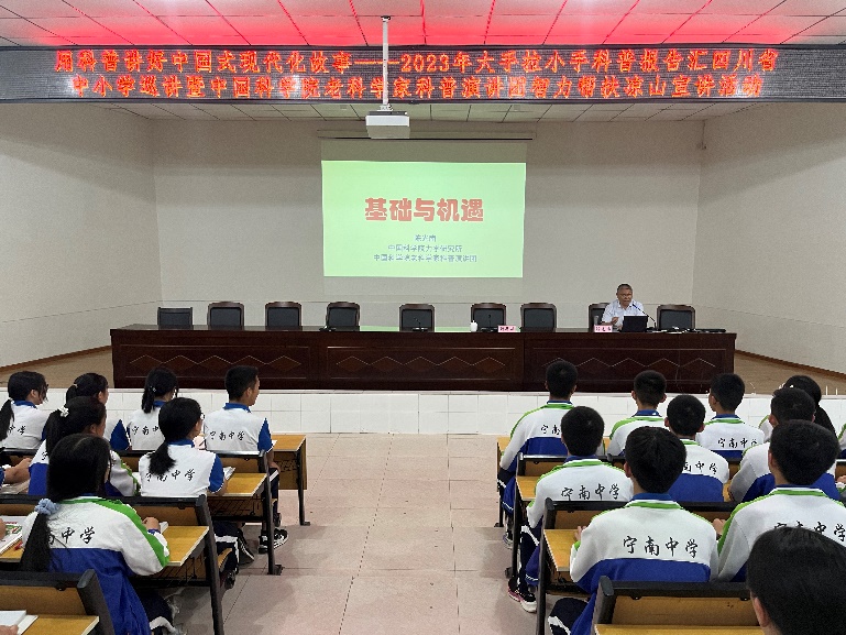 四川宁南高级中学。这是凉山彝族自治州最好的高中。2023年4月,宁南县教育局长在该校特别为我安排了一个晚场讲座《基础与机遇》。我以钱学森、郭永怀两位大师为例,结合自己的科研经历,解读了基础与机遇以及个人兴趣与国家需求的关系。整个会场气氛热烈,互动频繁。一些同学当场表示:要以老一辈科学家为榜样,发奋学习,砥砺前行,努力成为对国家对社会有用的人才!课后一位家长询问他的孩子:你听了中科院专家的这场讲座,感觉怎么样?孩子告诉他:“四个字:热血沸腾!”