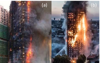图5(a)2010年静安区教师公寓火灾;(b)2017年伦敦格伦费尔高层大楼火灾(图片来源:网络)