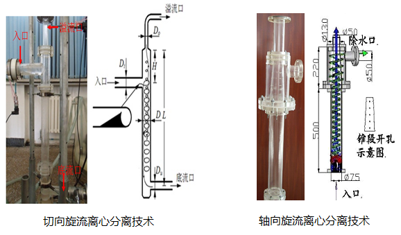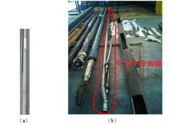 特别是,研究团队在2014年将二级梯型管+旋流器+复合脱水罐的组合工艺用于辽河油田高粘超稠油(粘度: 40Pas-100Pas、密度: 990 kg/m3 )的油气水三相分离生产线,在不加温、不掺稀油条件下,实现了超稠油的油气水分离(参见图3)。在2016年又将管道式分离器成功地用于渤海平台的井底分离。力学研究所研制的柱形旋流分离器尺寸小、处理量大、分离效率高、效果显著,至今仍正常运行。该井曾于2014年使用美国Baker Hughes公司研制的水力旋流分离器进行井下油水分离,效果欠佳,最后由于分离器结构损坏而弃用(参见图4)。研究团队在2018年将管道式分离技术用于南海流花FPSO,南海恩平24-2平台,均取得了良好效果。这些使用说明,这种小型,高效、便捷、经济、可靠的全新的管道式油气水分离技术在油气水处理领域独树一帜,不仅可以取代传统的储罐式分离,而且攻克了深海海底油气水分离、采油井井底油气水分离和高粘超稠油的油气水分离难题,使我国油气水分离技术跨越到该领域顶级水平。