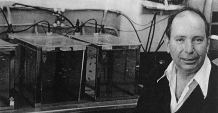 图5 施特雷辛格教授与他的斑马鱼饲养箱(图片来源:网络)