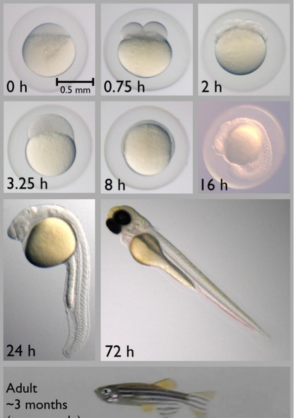 图6 显微镜下斑马鱼的胚胎发育过程(图片来源:网络)