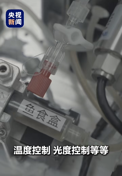 咱们先说在太空中怎样喂鱼的吧!大家知道,在地上养鱼只需要抓一把鱼食,投进水箱里就可以了。但是,在太空中需要控制水在实验装置中,不能让水流出来,只能将水密封在容器里面。这样,固体的鱼食就不好按照地面上的方式投放进去了。因此,科学家设计了一款牙膏状的特殊鱼食,用注射器的方式,按照必要的食量,每天推入到实验装置里面,让鱼尽量吃完。鱼吃完产生的固体排泄物,可以通过管道输运到金鱼藻那边,促使它生长。