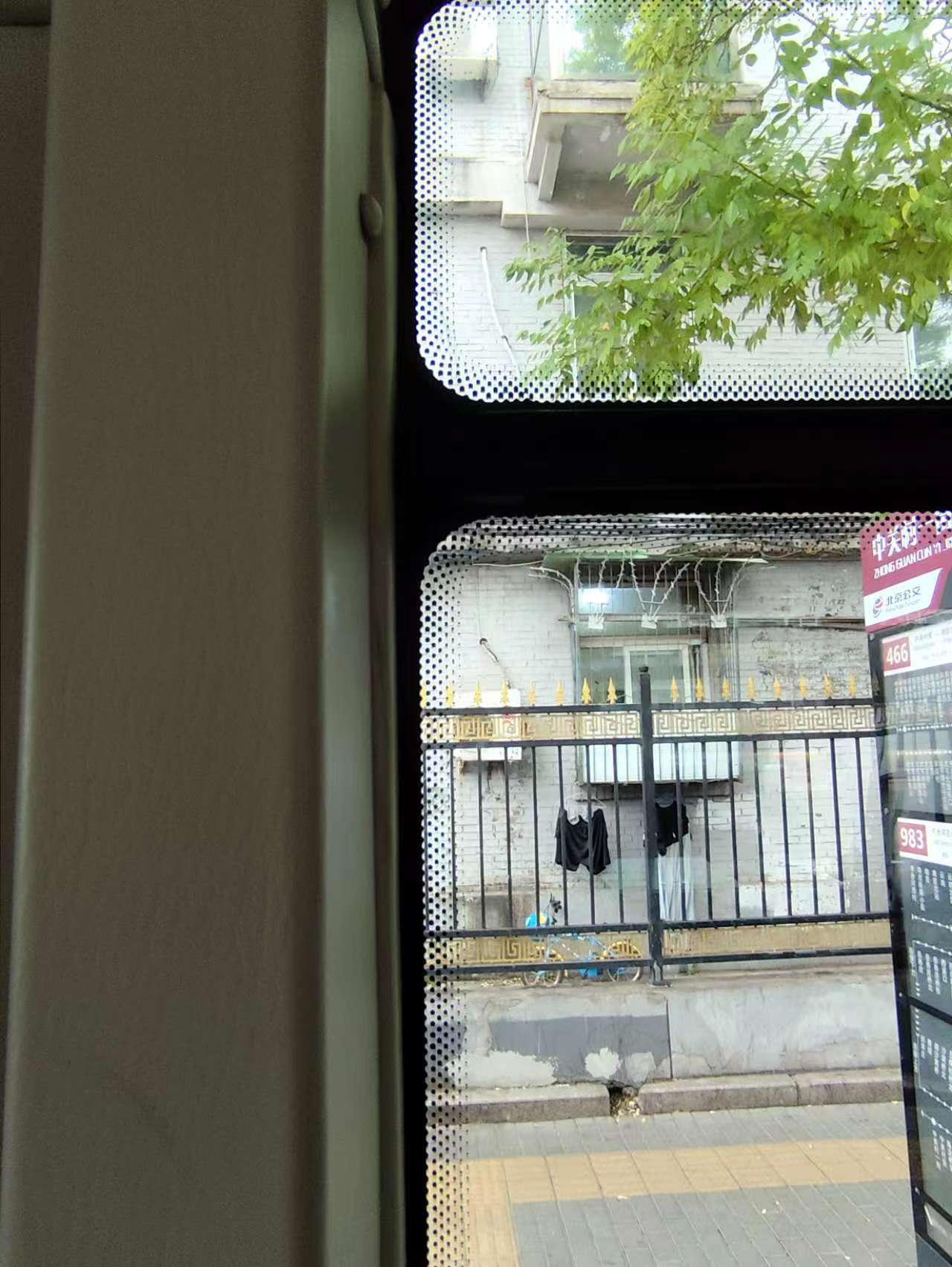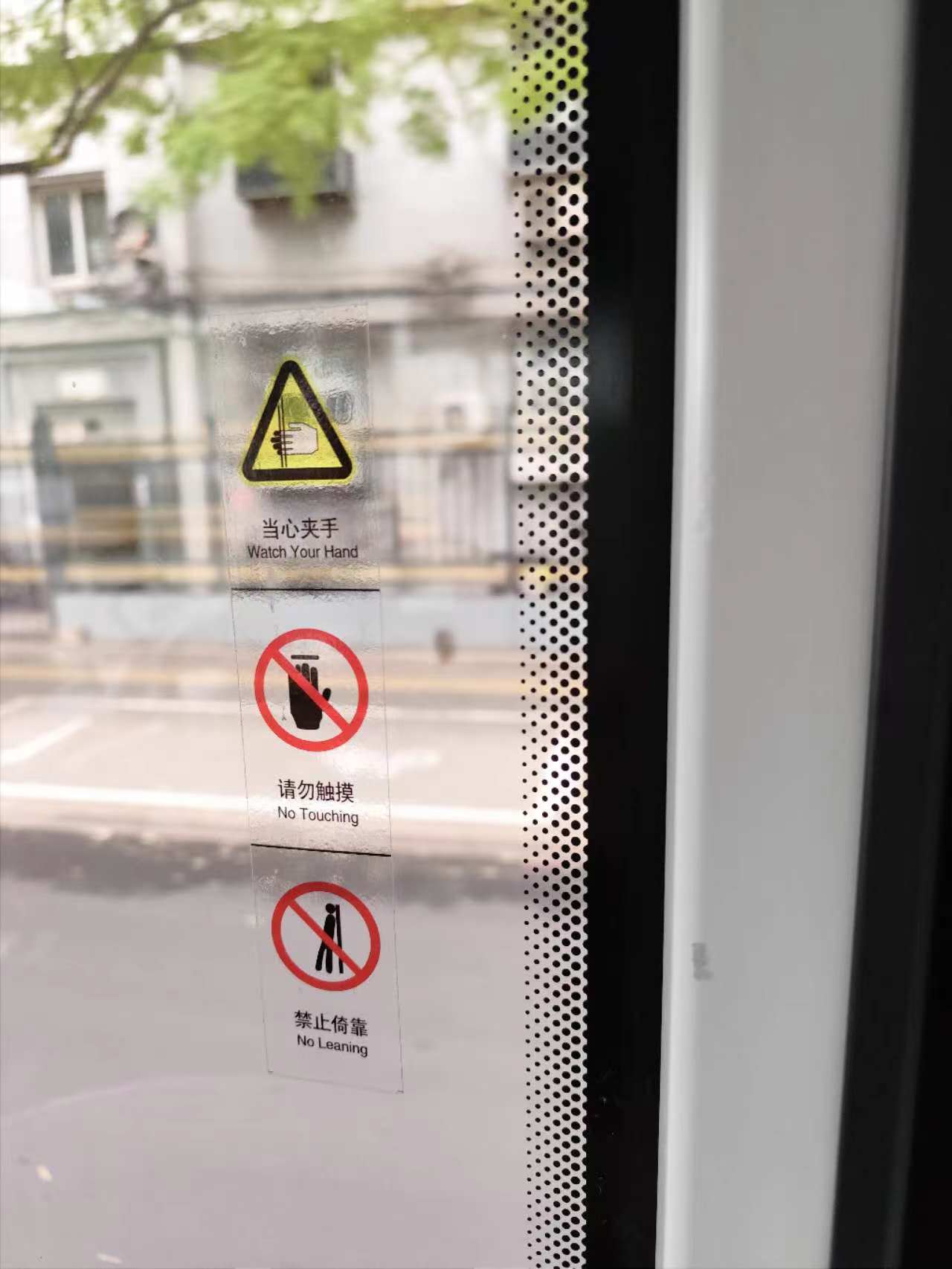 图10 运营中公交车的车门玻璃(左)和车窗玻璃(右)(图片来源:作者自摄)