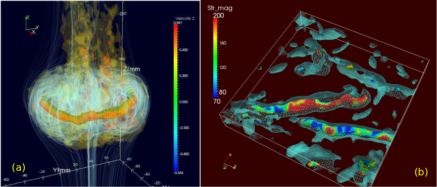 In this talk, two volumetric particle Image Velocimetry (PIV) techniques will be discussed via the data obtained from the measurements of two types of turbulent flows. The first technique uses passive scanning stereoPIV (based on Taylor Hypothesis) to reconstruct a fully 3D turbulent vortex ring. The second technique uses our in-house developed TomoPIV package to capture the coherent enstrophy structures in a locally isotropic turbulent field; see Fig 1. The two methods are both able to resolve the complete velocity gradient tensor, but they have their advantages in different applications. Stereo-scanning PIV is a quasi-instantaneous technique but generally has higher spatial resolution. TomoPIV is truly instantaneous and hence can resolve temporal derivatives. However, it has significant hardware requirements and is not suitable for high seeding conditions. In the talk, comparison of the two techniques will be briefly discussed through the assessment of divergence of the 3D velocity fields.