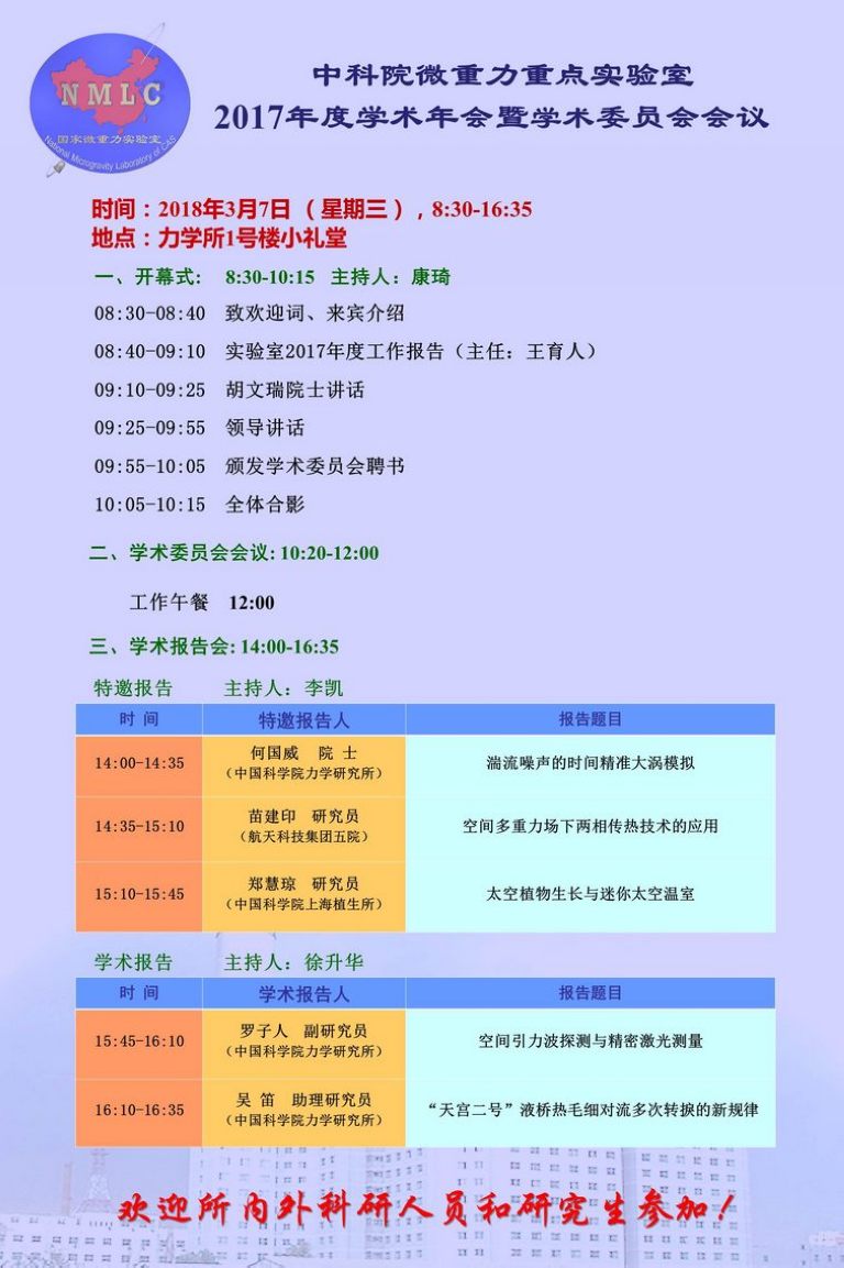 (3月7日)中科院微重力重点实验室2017年度学术年会