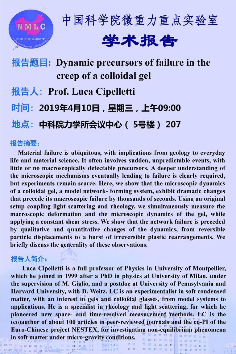(NML-4月10日9:00 所会议中心)学术报告会