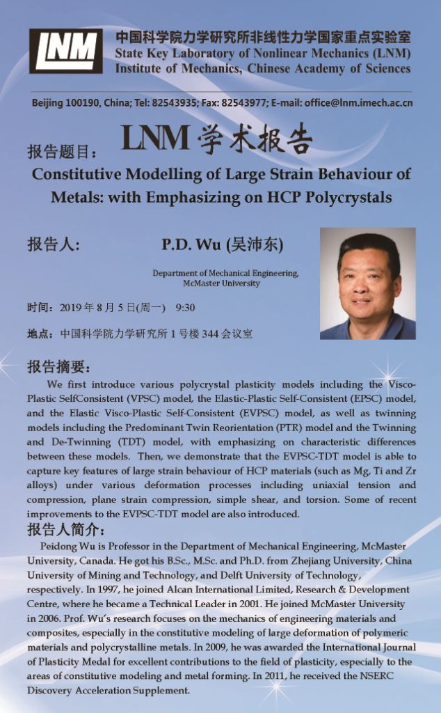 (8月5日 9:30 1号楼344)Constitutive Modelling of Large Strain Behaviour of Metals: with Emphasizing on HCP Polycrystals