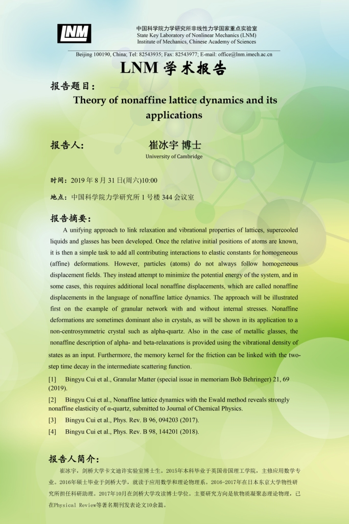 (8月31日10:00 1号楼344)Theory of nonaffine lattice dynamics and its applications