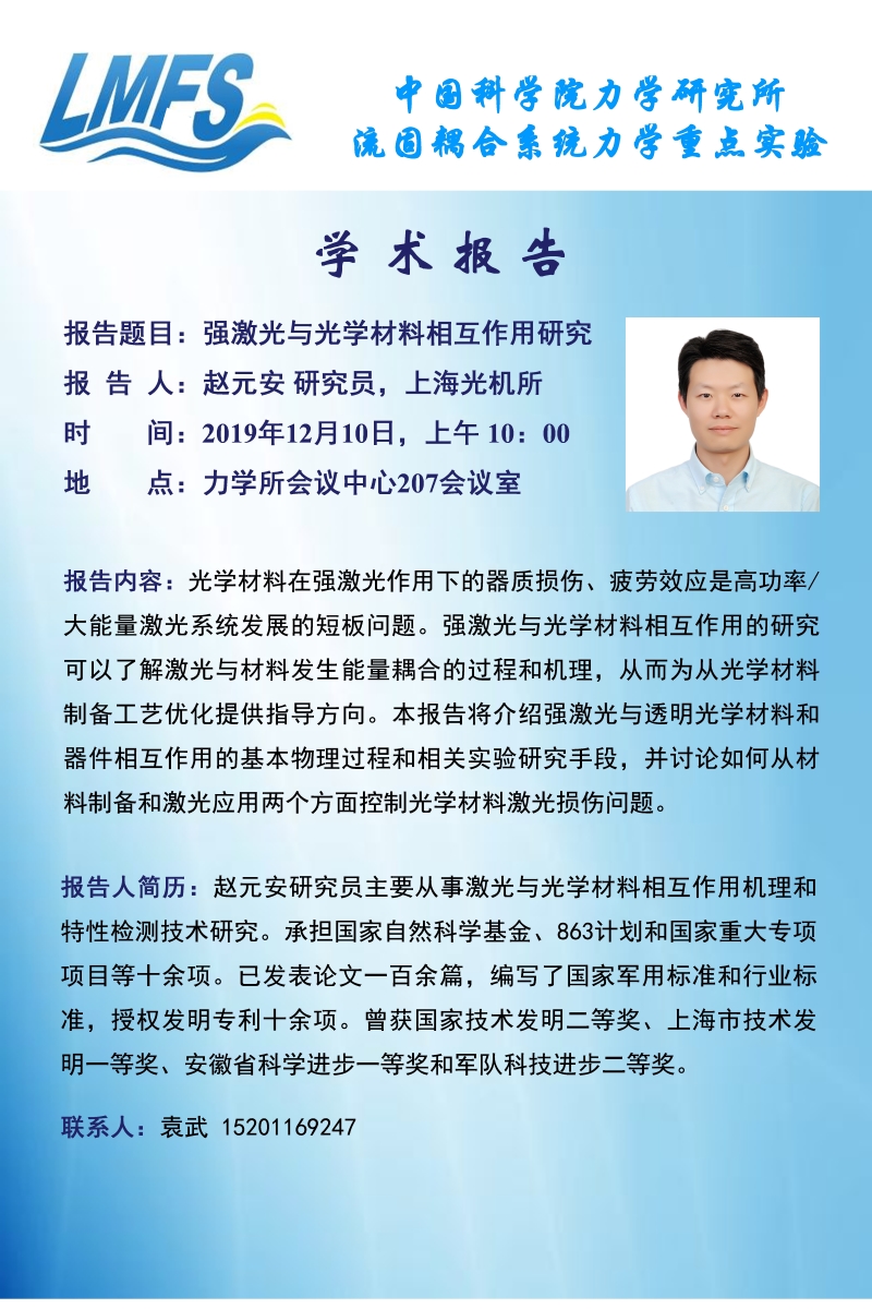 (LMFS 12月10日10:00 会议中心207室) 强激光与光学材料相互作用研究
