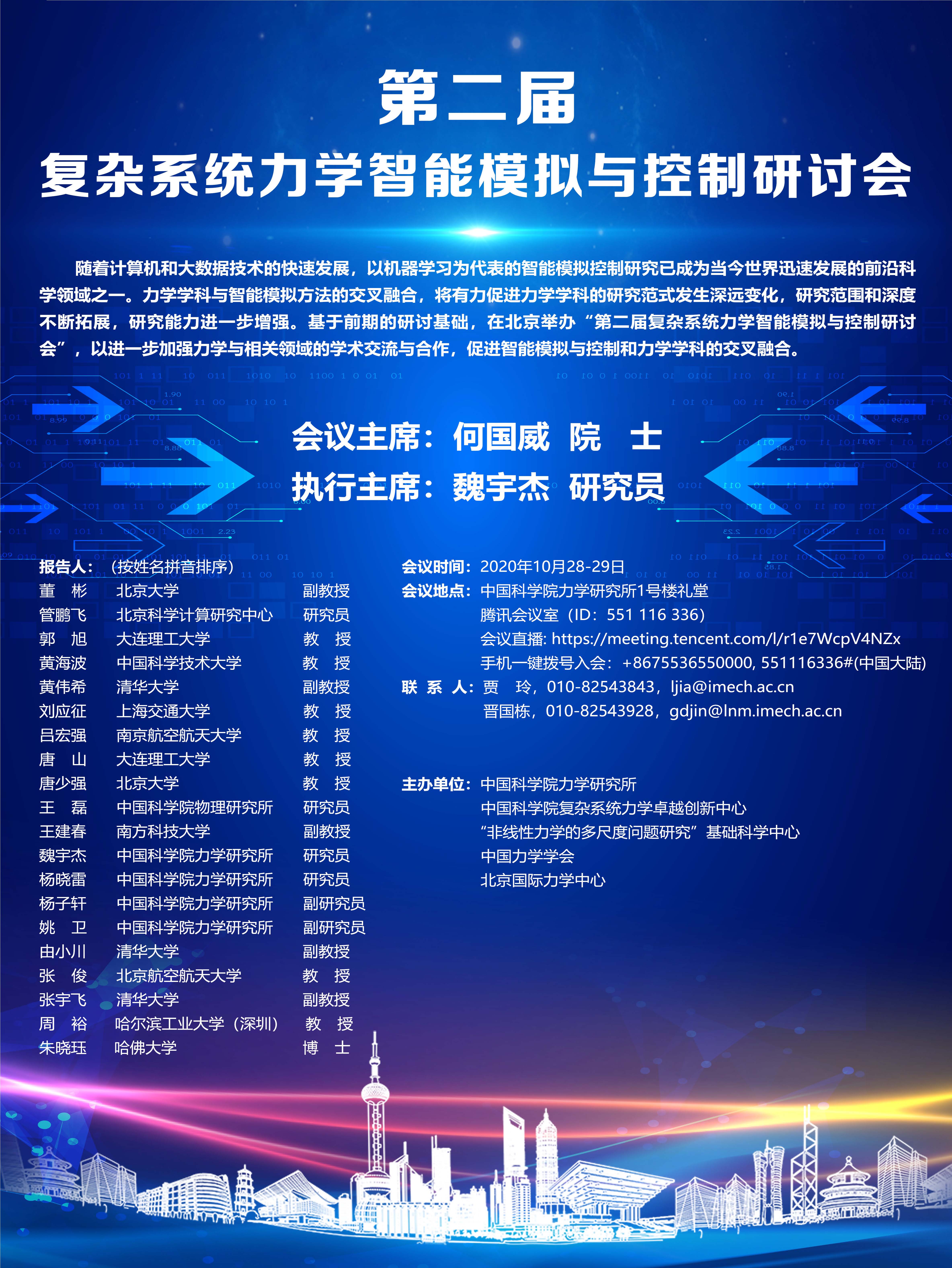 (10月28-29日,Q彩网小礼堂)第二届复杂系统力学智能模拟与控制研讨会