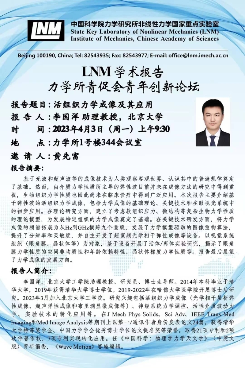 (LNM 4月3日 9:30 1号楼344)活组织力学成像及其应用