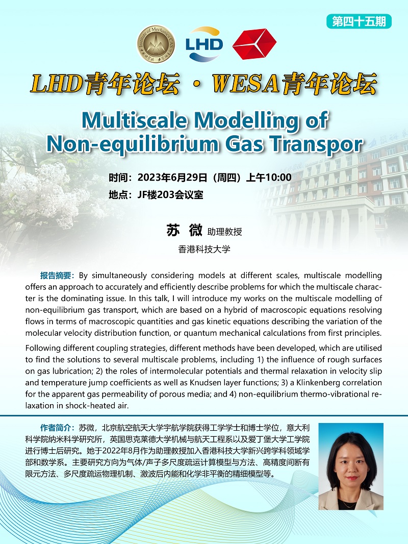 (LHD青年论坛&WESA青年论坛 6月29日 10:00 JF楼203会议室)Multiscale Modelling of Non-equilibrium Gas Transpor
