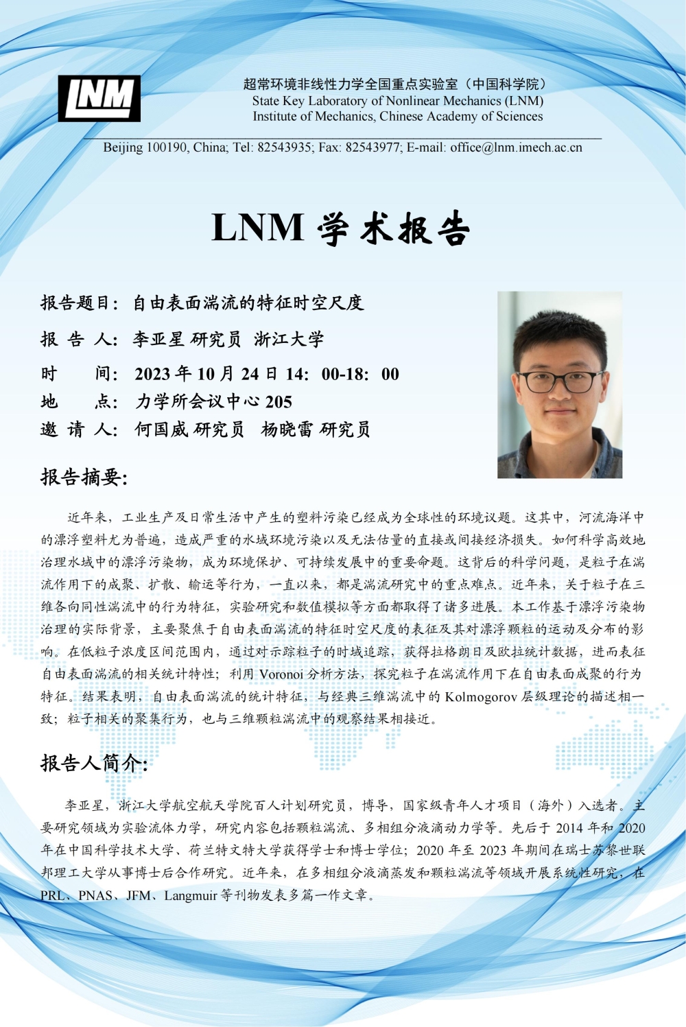 (LNM 10月24日 14:00-18:00 会议中心205会议室)自由表面湍流的特征时空尺度