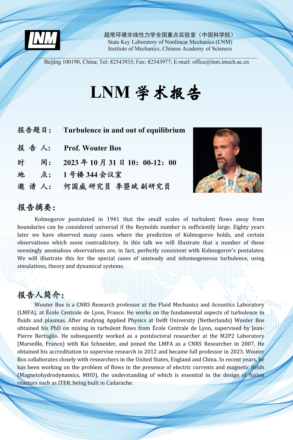 (LNM 10月31日 10:00-12:00 1号楼344)Turbulence in and out of equilibrium