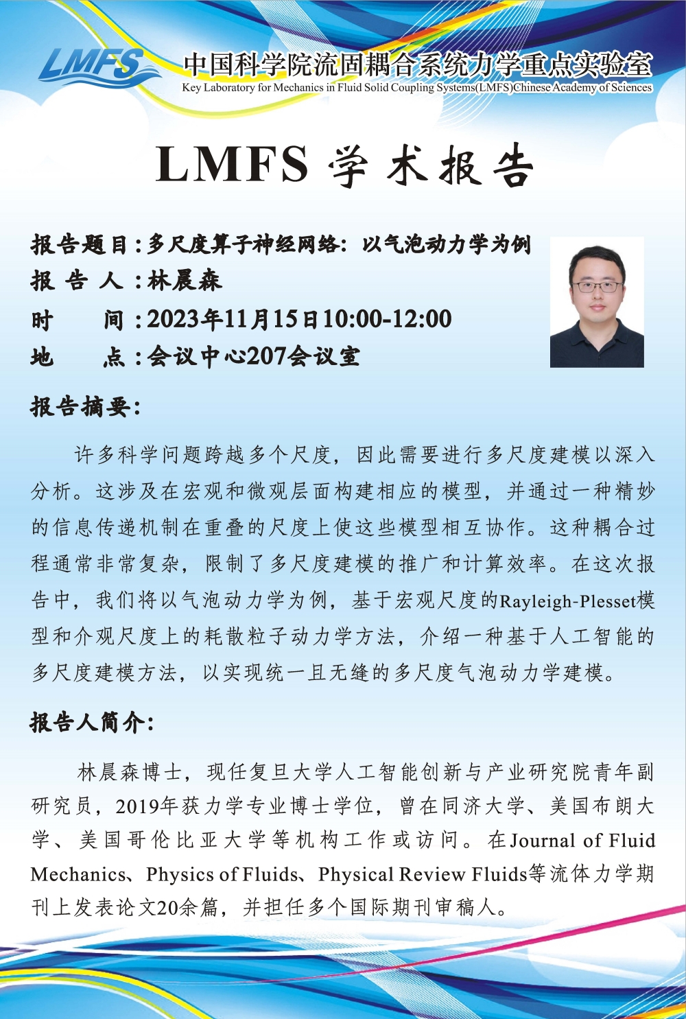 (LMFS 11月15日10:00~12:00 会议中心207会议室)多尺度算子神经网络:以气泡动力学为例