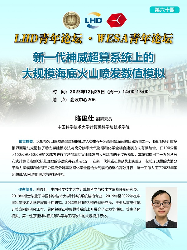 (LHD青年论坛&WESA青年论坛 12月25日14:00 会议中心206)新一代神威超算系统上的大规模海底火山喷发数值模拟