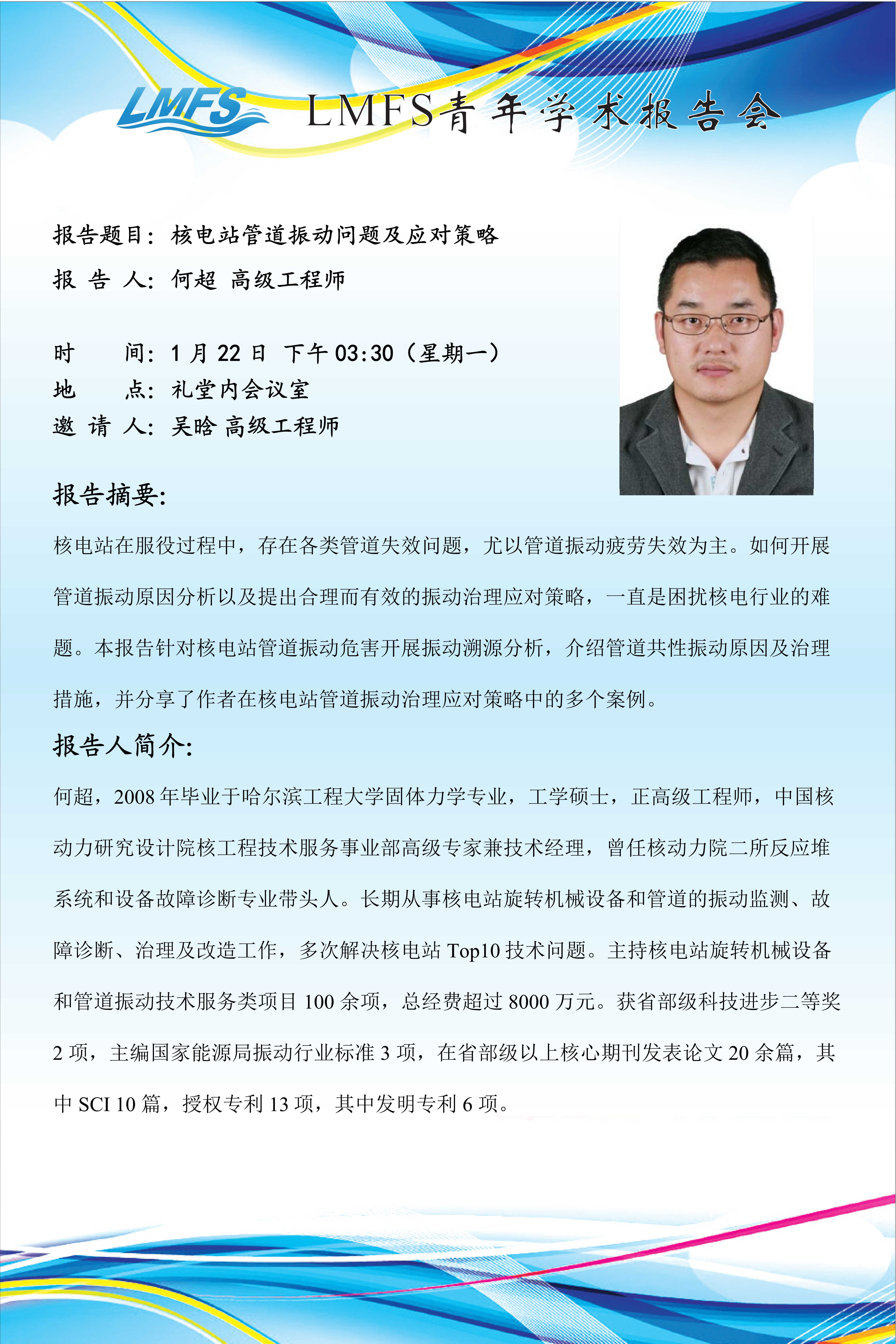 (LMFS青年学术报告1月22日15:30,1号楼礼堂内会议室)核电站管道震动问题及应对策略