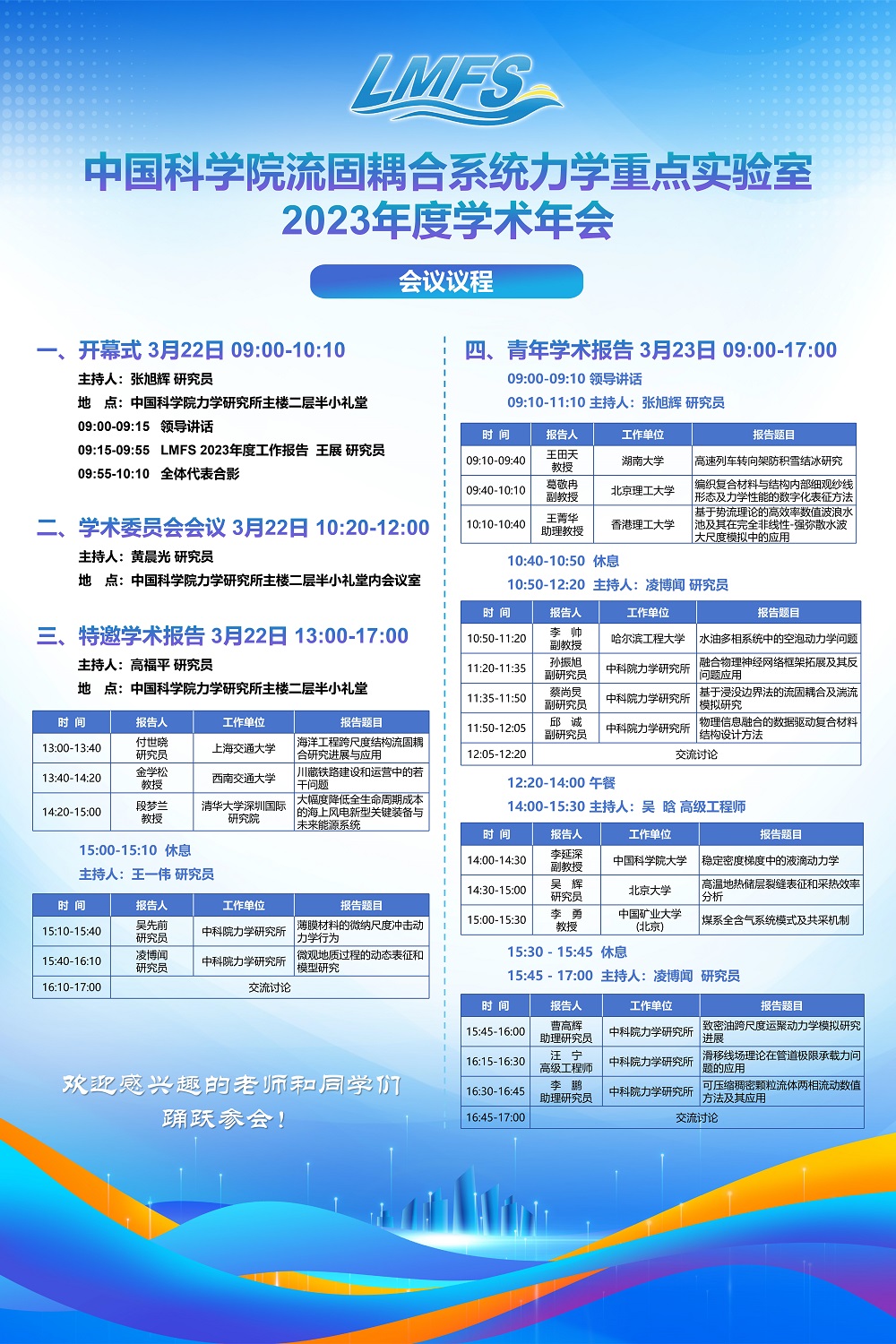 (LMFS 3月22日-23日 1号楼小礼堂)中国科学院流固耦合系统力学重点实验室2023年学术年会
