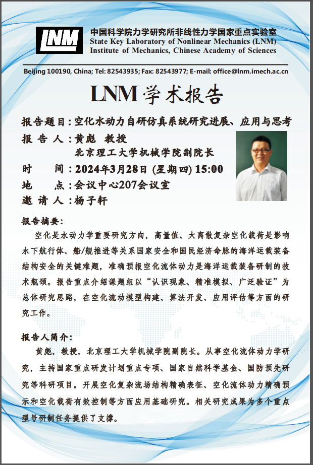 (LNM 3月28日 15:00 会议中心207 )空化水动力自研仿真系统研究进展、应用与思考