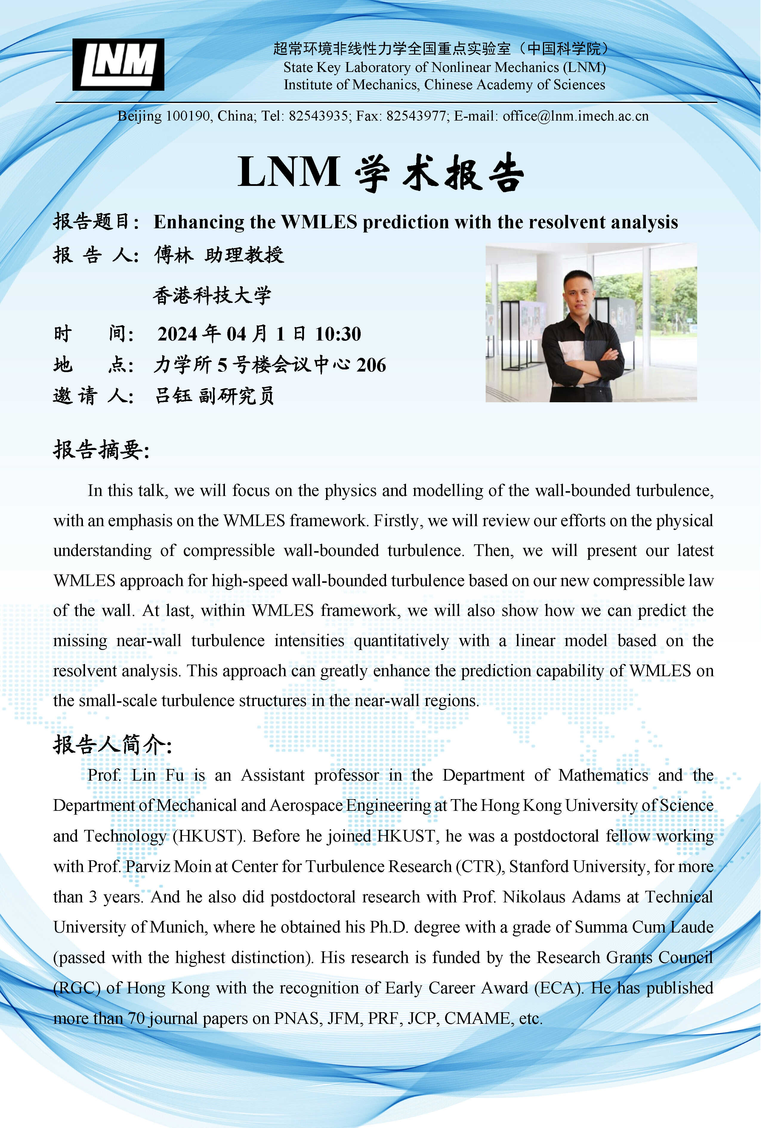 (LNM 4月1日 10:30 会议中心206)Enhancing the WMLES prediction with the resolvent analysis