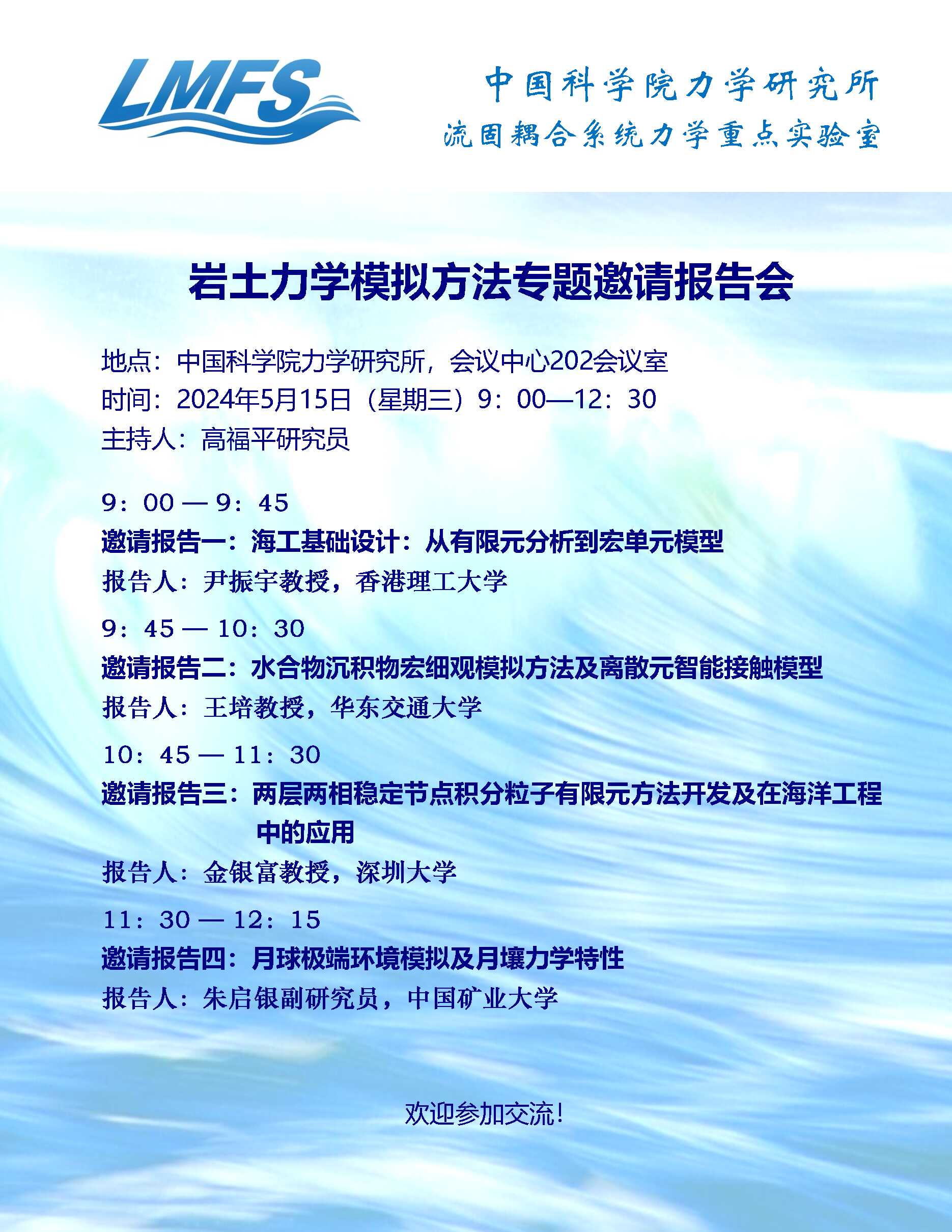 (LMFS 学术报告 5月15日9:00-12:30, 5号楼202会议室 )岩土力学模拟方法专题邀请报告会