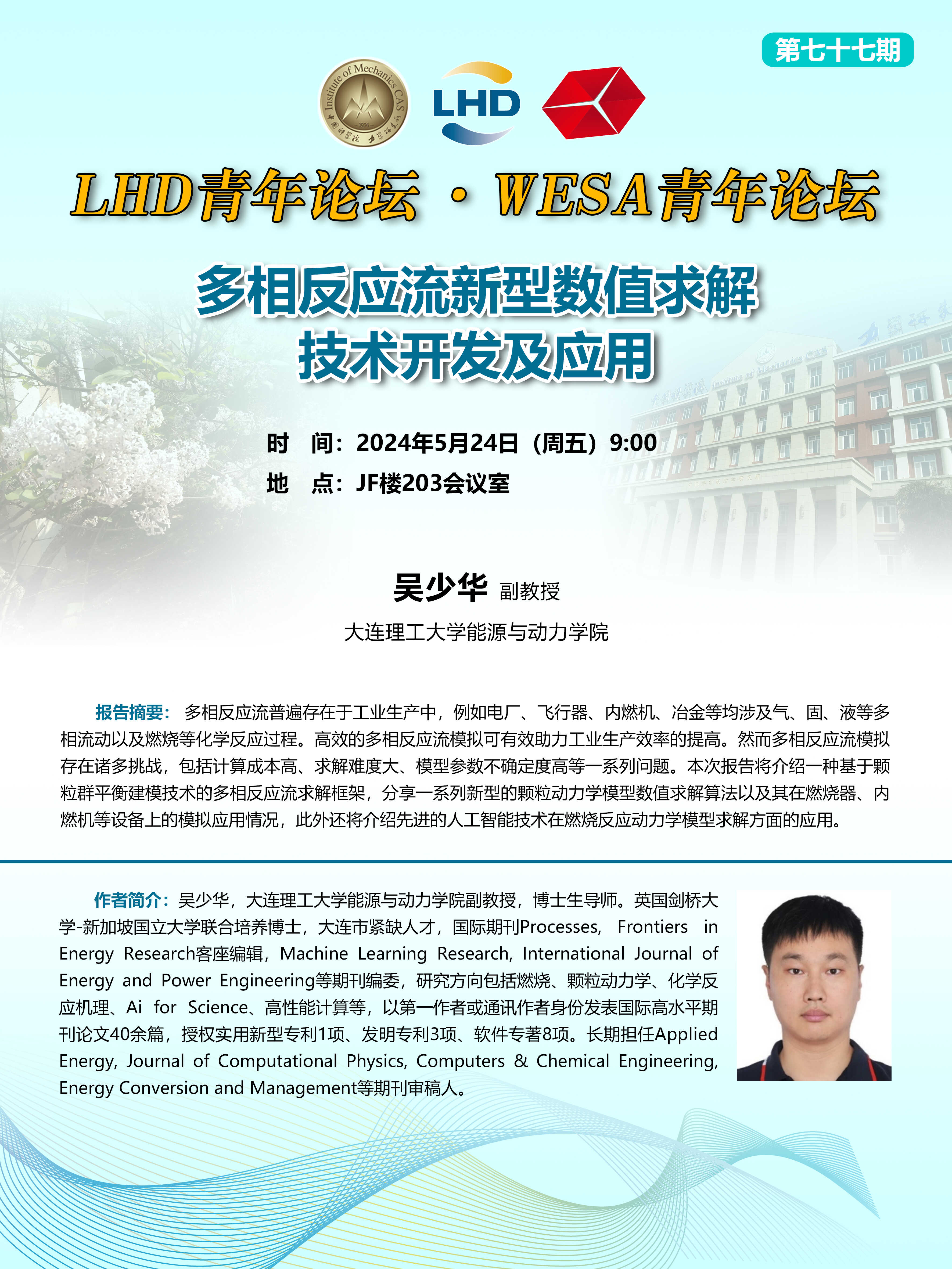 (LHD青年论坛&WESA青年论坛 5月24日 9:00 JF楼203会议室)多相反应流新型数值求解技术开发及应用