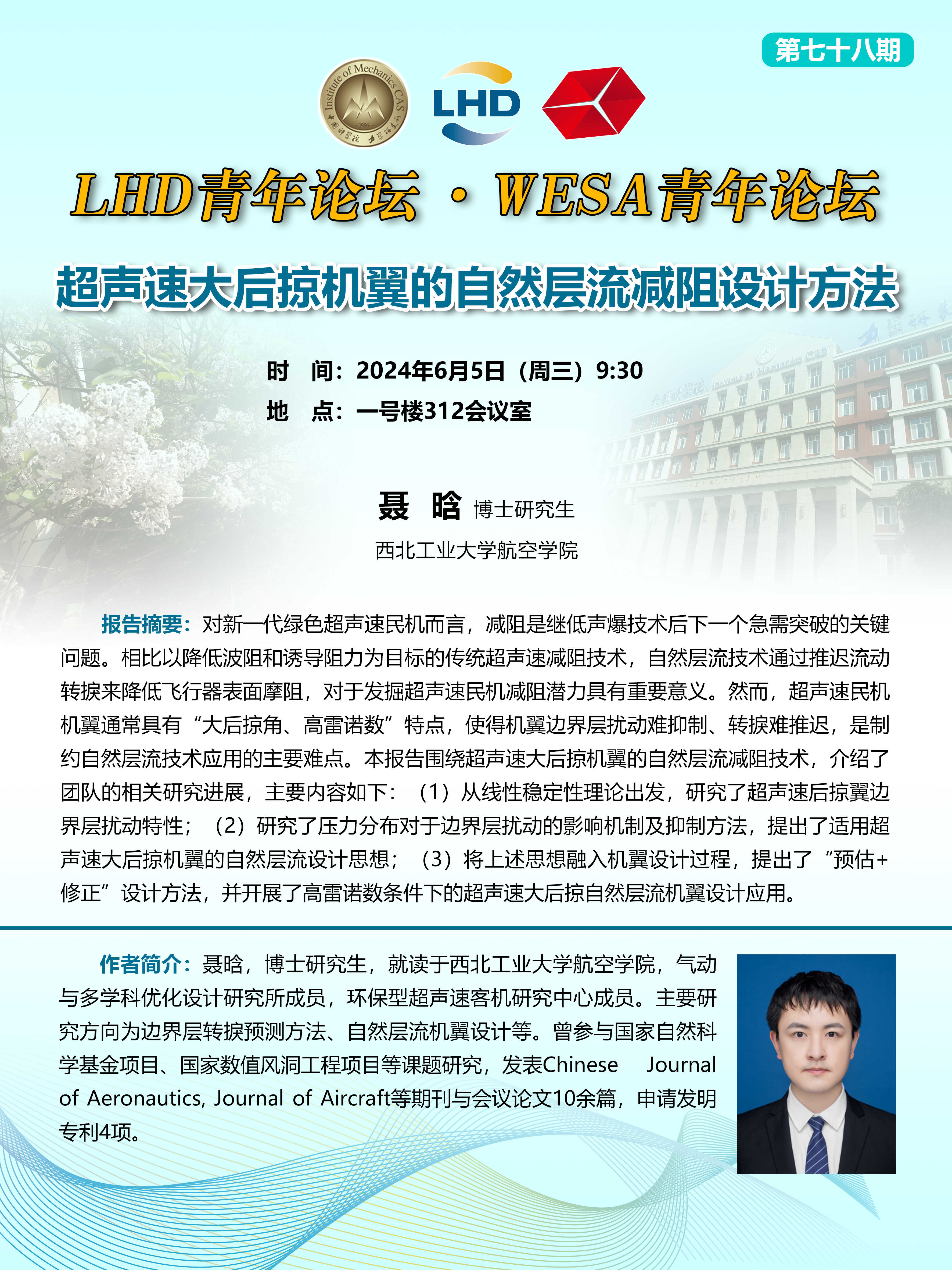(LHD青年论坛&WESA青年论坛 6月5日 9:30 一号楼312会议室)超声速大后掠机翼的自然层流减阻设计方法
