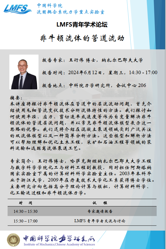 (6月12日14:30-17:00 5号楼206会议室)LMFS青年学术论坛-非牛顿流体的管道流动