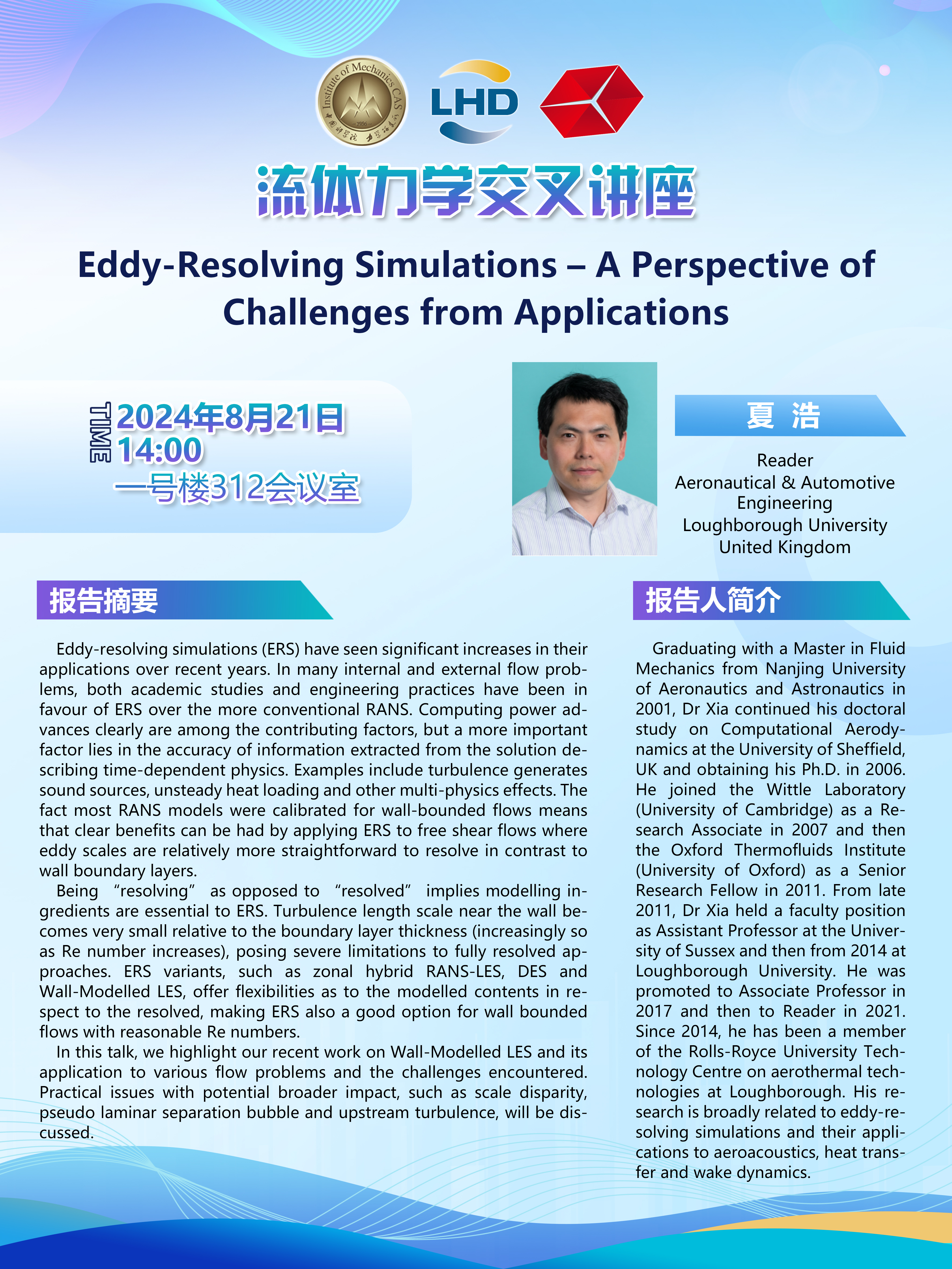 (LHD流体力学交叉讲座 8月21日 14:00 一号楼312会议室)Eddy-Resolving Simulations-A Perspective of Challenges from Applications