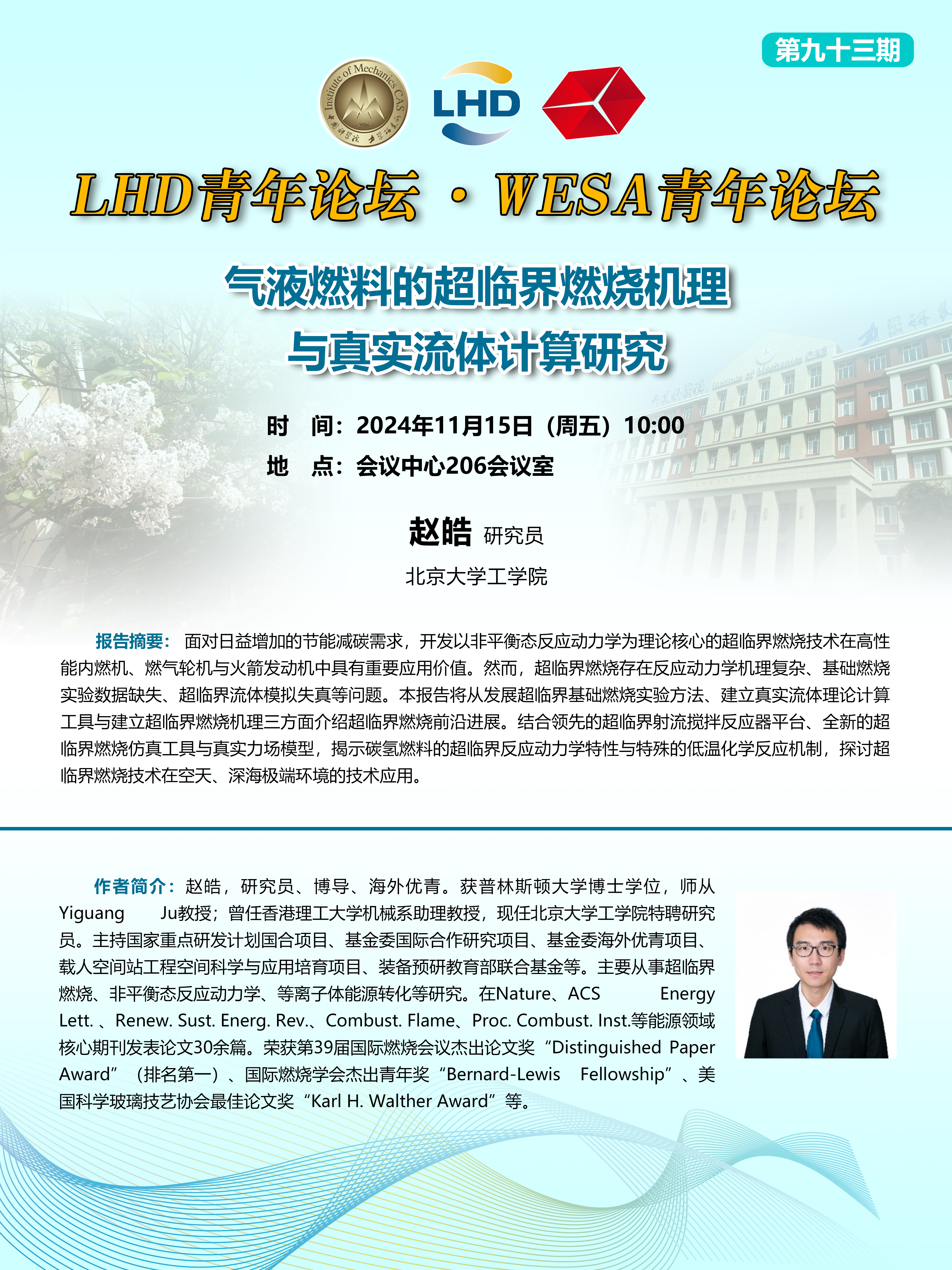 (LHD青年论坛&WESA青年论坛 11月15日 10:00 会议中心206会议室)气液燃料的超临界燃烧机理与真实流体计算研究