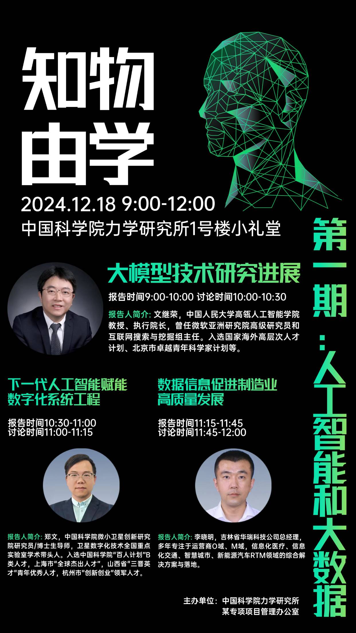 (知物由学工程论坛,12月18日9:00-12:00,1号楼小礼堂)第一期:人工智能和大数据