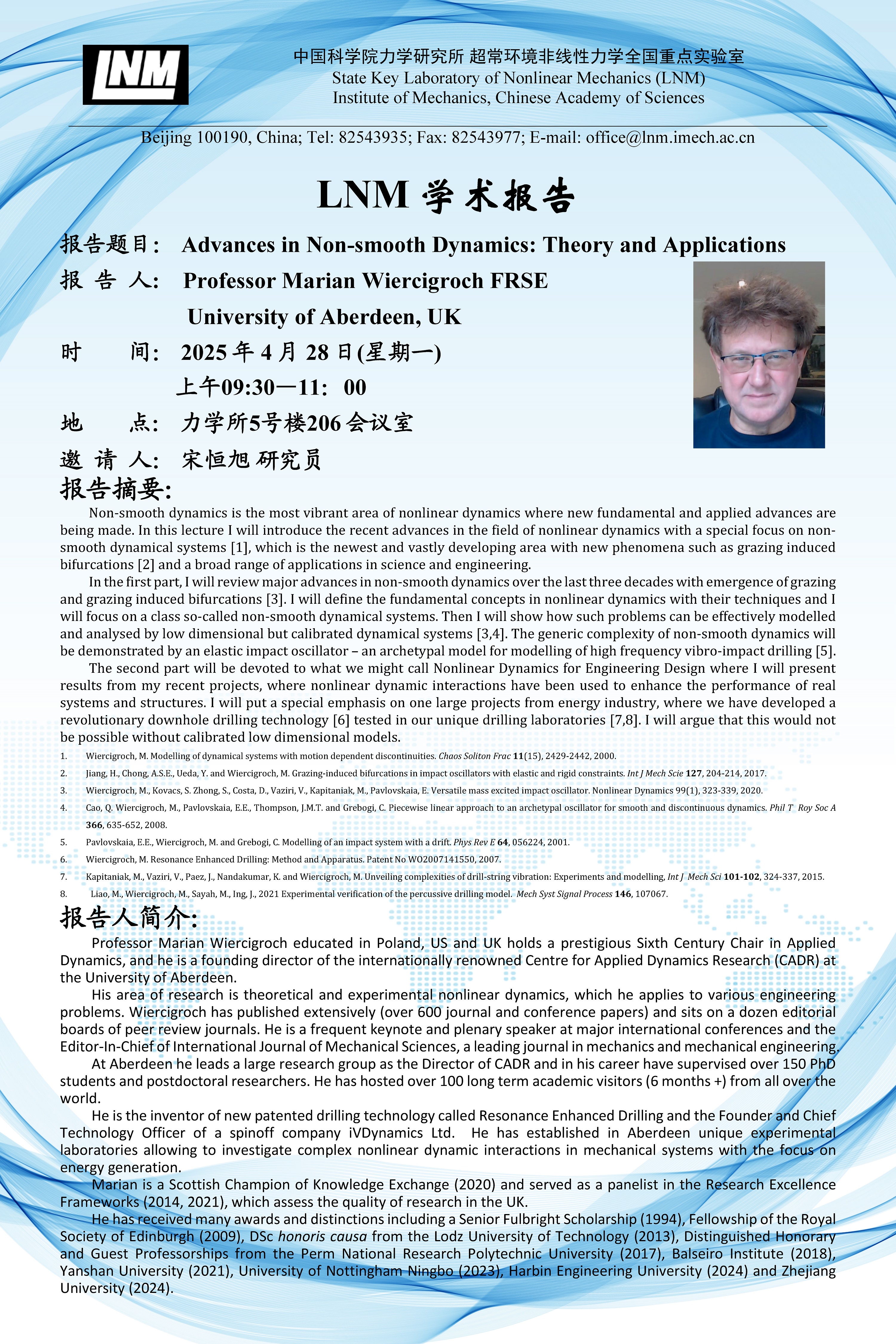 (LNM 4月28日 9:30 5号楼206会议室 )Advances in Non-smooth Dynamies: Theory and Applcations
