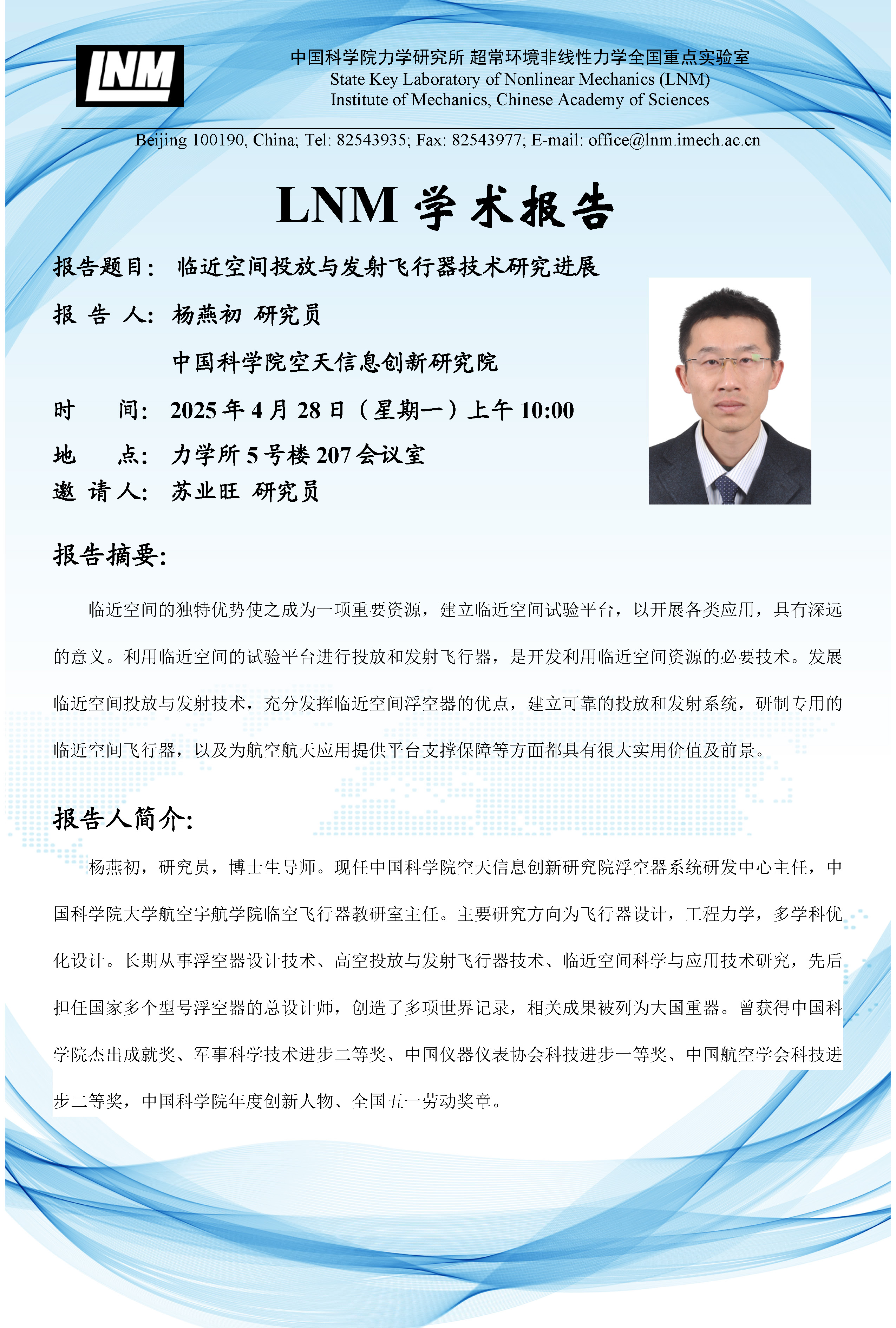 (LNM 4月28日 10:00 5号楼207会议室)临近空间投放与发射飞行器技术研究进展