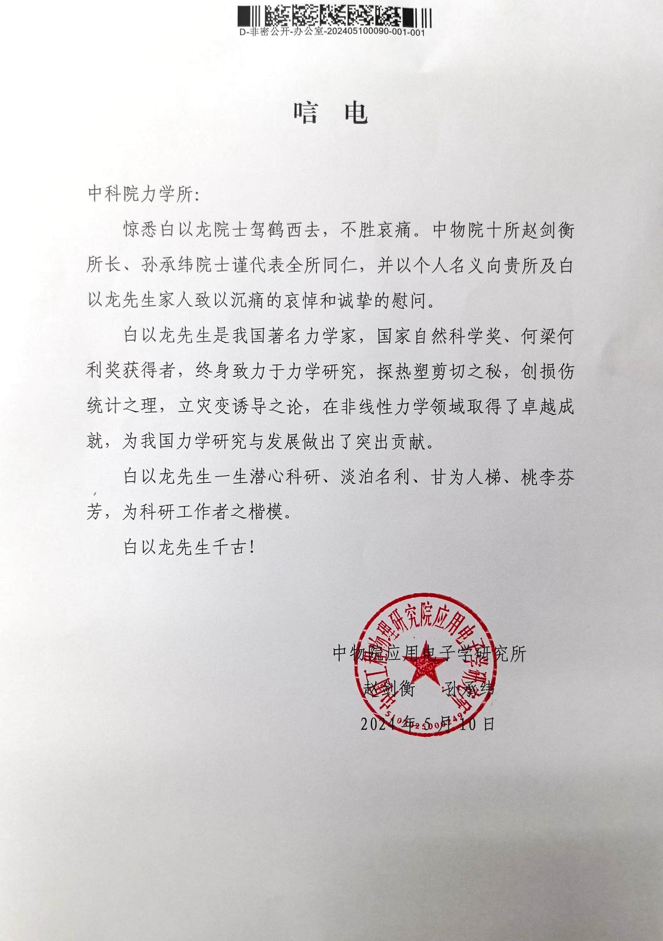 中国工程物理研究院应用电子学研究院唁电