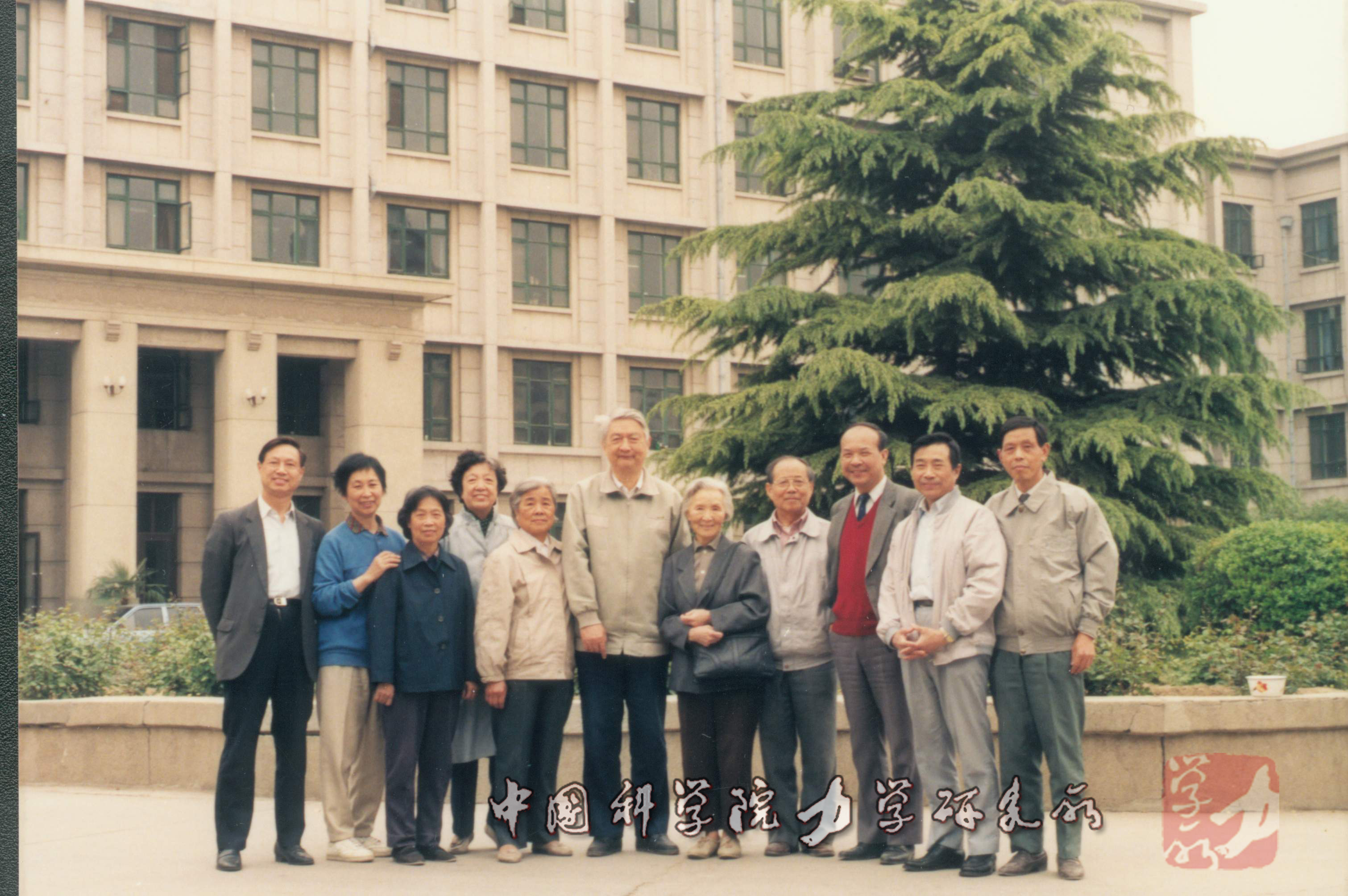 1991年郑哲敏李佩等一直关心早期Q彩网怀柔分部工作的老同志,右起陈良,谈庆明,何鼓声,郑哲敏,李佩,朱兆祥,张可文,金和,陈丽吟,石光漪,陈融英