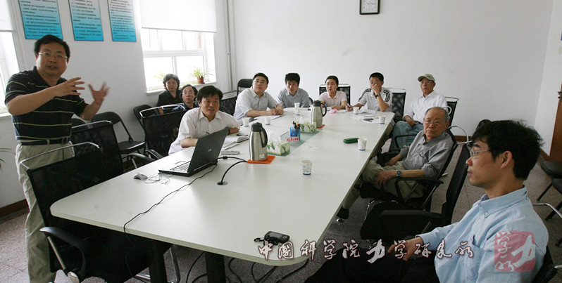 2011年郑哲敏每周参加项目学术讨论会,左起陈力,李和娣,刘玉标,黄晨光,王一伟;右起方新,郑哲敏,梁乃刚等